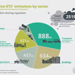 歐盟國家的溫室氣體排放限制是在兩個不同的框架內(nèi)設(shè)定和實施的,即所謂的“碳排放交易體系”(ETS)和“非ETS”部門。2015年非ETS部門排放高達25.19億噸(約占歐洲碳排放的60%),其中交通8.88億噸、建筑6.34億、農(nóng) ... ...