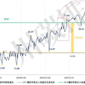 2018履約年度,廣東碳市場配額價格呈持續(xù)上漲趨勢,年度漲幅高達59.27%;年度記入收盤價交易均價為20.87元/噸,較2017履約年度(14.56元/噸)上漲43.36%。2019年2月22日配額收盤價漲至20.94元/噸,經(jīng)過多日震蕩調(diào)整 ... ...
