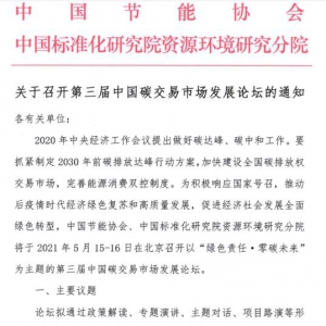• 第三屆中國碳交易市場發(fā)展論壇開啟官方報(bào)名通道【2021年5月15-16日】