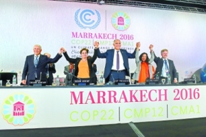 中新社馬拉喀什11月18日電 (記者 李曉喻 俞嵐)47個最易受氣候變化影響的脆弱國家18日在馬拉喀什氣候大會的一個論壇上宣布,將盡可能在2020年前提高國家自主貢獻(xiàn)目標(biāo),并努力實(shí)現(xiàn)100%可再生能源生產(chǎn)。 最易受氣候變化 ...