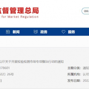 市場(chǎng)監(jiān)管總局辦公廳關(guān)于開展檢驗(yàn)檢測(cè)市場(chǎng)專項(xiàng)整治行動(dòng)的通知市監(jiān)檢測(cè)發(fā)〔2022〕26號(hào)各省、自治區(qū)、直轄市和新疆生產(chǎn)建設(shè)兵團(tuán)市場(chǎng)監(jiān)管局(廳、委):為加強(qiáng)檢驗(yàn)檢測(cè)機(jī)構(gòu)監(jiān)管,嚴(yán)肅查處不實(shí)和虛假檢驗(yàn)檢測(cè)等違法違規(guī)行 ...