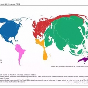 美國銀行美林最近發(fā)布“世界變革地圖”,其中的一幅圖把世界地圖按照各國每年碳排放總量的大小比例重新繪制,中國的面積立時大了不少,快回到大清帝國最強盛的年代了,把美國比下去了。當然這只是按照當下各國每年碳 ...