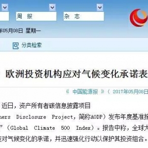 巴黎協(xié)議的實(shí)施,使得氣候金融風(fēng)險成為了全球投資機(jī)構(gòu)關(guān)注的話題。全球金融投資流向應(yīng)與2℃控溫目標(biāo)保持一致也已在全球達(dá)成共識。今年5月,中國能源報(bào)對英國非盈利組織“資產(chǎn)方信息披露項(xiàng)目”(Asset Owners Disclos ...